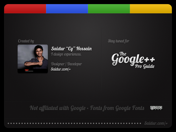 លោកអ្នកពិតជាចង់ដឹងហើយមែនទេថា តើ Google+ មានអ្វីពិសេសខ្លះទៅ? ហើយអាចធ្វើបានអ្វីខ្លះ? នៅក្នុងរូបទាំងប៉ុន្មាននេះ អ្នកនឹងទទួលបានចំណេះមួយថែមទៀតអំពី Google+។ រូបទាំងនេះនឹងបង្ហាញអ្នកឲ្យយល់ពីការប្រើប្រាស់លក្ខណៈពិសេសមួយចំនួនរបស់ Google+ មានដូចជា៖ Circles (រង្វង់ក្រុម), Sharing (ការចែករំលែក), Reading (ការអាន), Talking (ការជជែកម្សាន្ត)….. រូបទាំងនេះត្រូវបានបង្កើតដោយលោក Saidur (Cy) Hossain [វ៉ិបសៃថ៍] ហើយបានផ្សាយដំបូងនៅក្នុងបណ្ដាញ Google+។